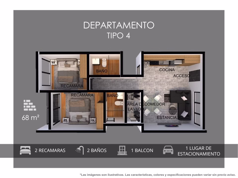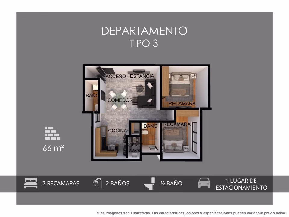 IMAGENES DEL DEPARTAMENTO MUESTRA (prototipo 1, 79 m2: Precio: $3,675,000). Precio correspondiente al PROTOTIPO 1 de 79 m2.